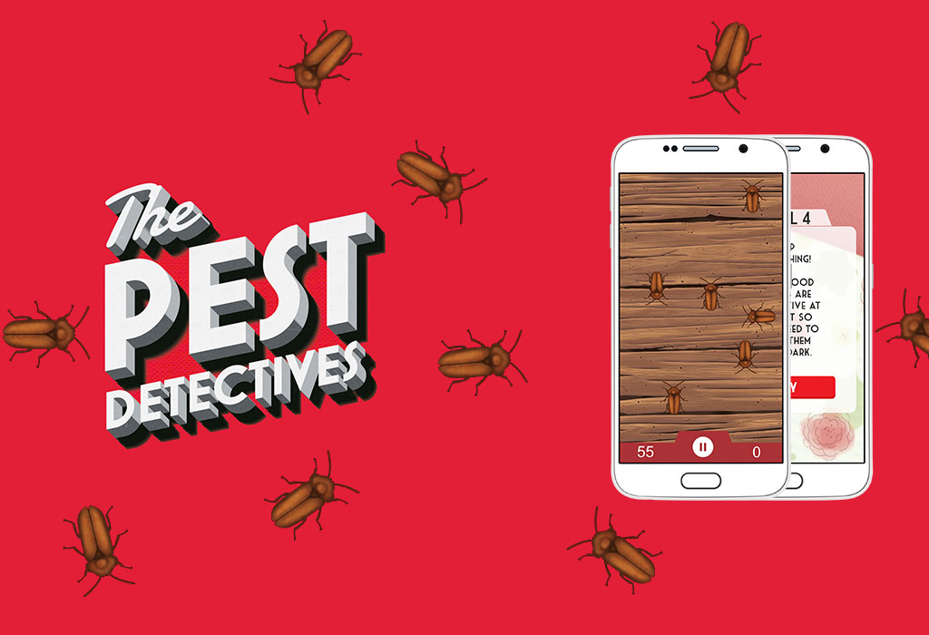 We devised the original concept for the game – a pest squashing app where users tap pests as they came on the screen. As the idea developed, custom pest and background illustrations were created and built into the app, while problems were incorporated to make the game more challenging (Bedbugs are most active at dusk, so the screen gets darker as the level progresses, Cockroaches are notoriously difficult to kill so they must be tapped three times to get the points). Scores for the game are stored on Apple and Android native leaderboards, while also being sharable via social networks.